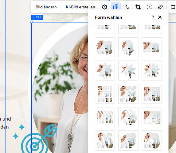 - A variety of form masks for images to choose from (see screenshot).